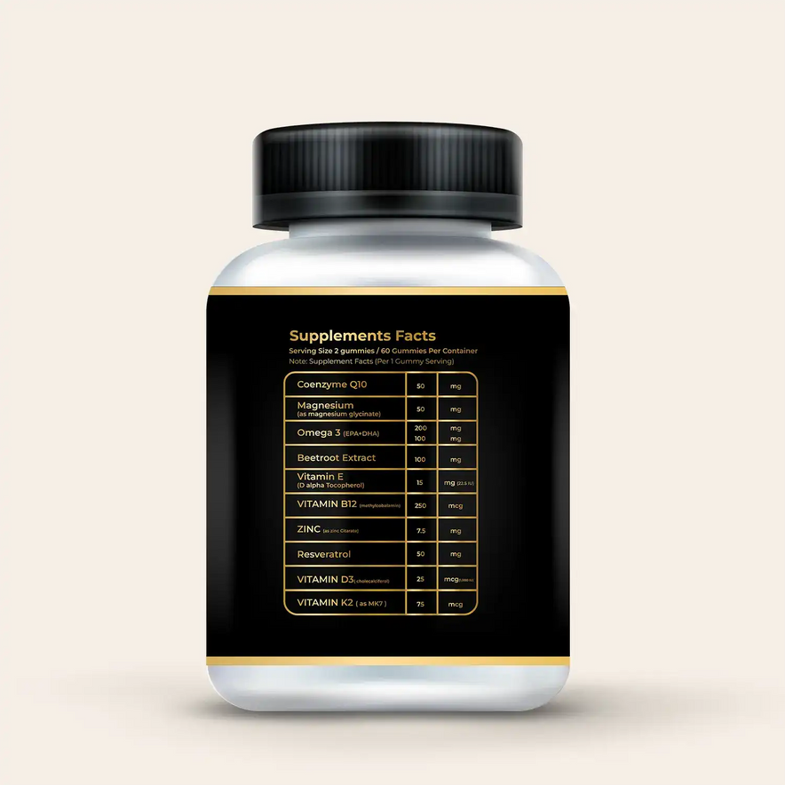 CoQ10 is like the spark plug of your bodyβs engine β it helps your cells generate ATP, the core energy currency that powers every heartbeat, brain signal, and muscle movement. With age, stress, or certain diets, CoQ10 levels drop, leading to fatigue and sluggishness. These gummies help restore that natural energy cycle, keeping you active, focused, and ready to take on the day.